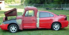 Przed Wami dzieło godne doktora Frankensteina. Głównymi dawcami komórek był International z 1962 roku oraz Pontiac Grand Am z lat dziewięćdziesiątych ubiegłego wieku. Całość poskładana z precyzją chirurga, który swoje uprawnienia nabył na słynnym i kultowym w wielu kręgach Bazarze Różyckiego.