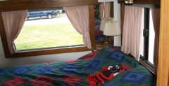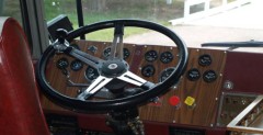 Wnętrze mieszkalne ma dębowe umeblowanie, wbudowany sejf, toaletę, mikrofalówkę, podłogę glazurę/wykładziny podłogowe, zasłony, ogromne łoże. Z dodatkowych ciekawostek jest podwójna klimatyzacja, kuchenka dwupalnikowa, 530-litrowy zbiornik wody bieżącej, 265-litrowy na zużytą, gazowo-elektryczna lodówka, nowoczesna kuchenka z piekarnikiem, dodatkowe zestaw siodłowy na przyczepę z hydraulicznie opuszczanym tyłem i… (najlepsze) 265-litrowym zbiornikiem paliwa z pompą służąca jako dystrybutor na wszelkie spalinowe „zabawki dla dużych chłopców”.